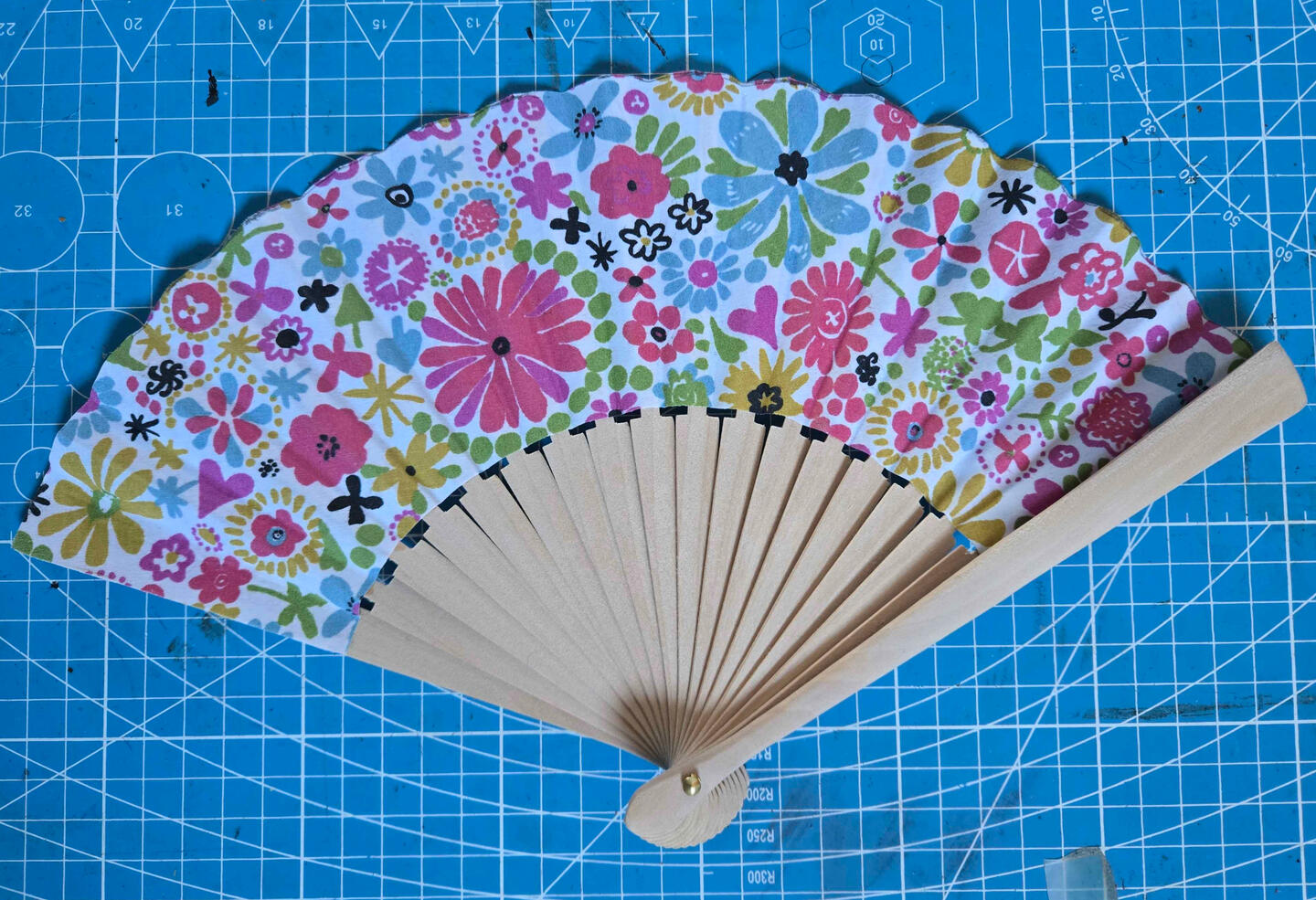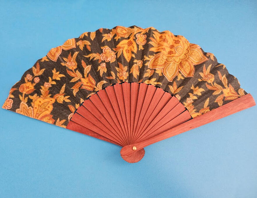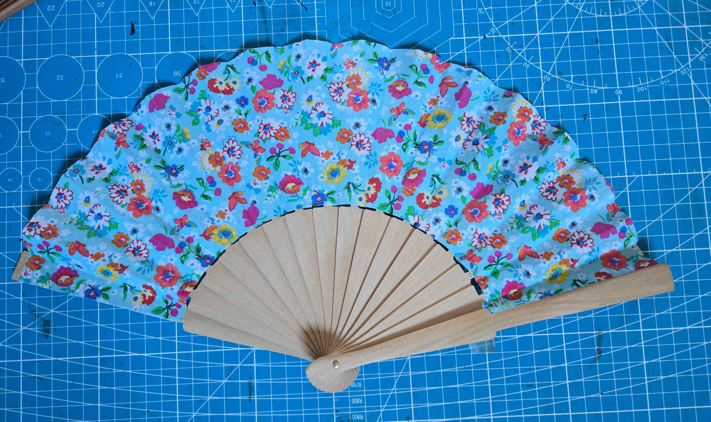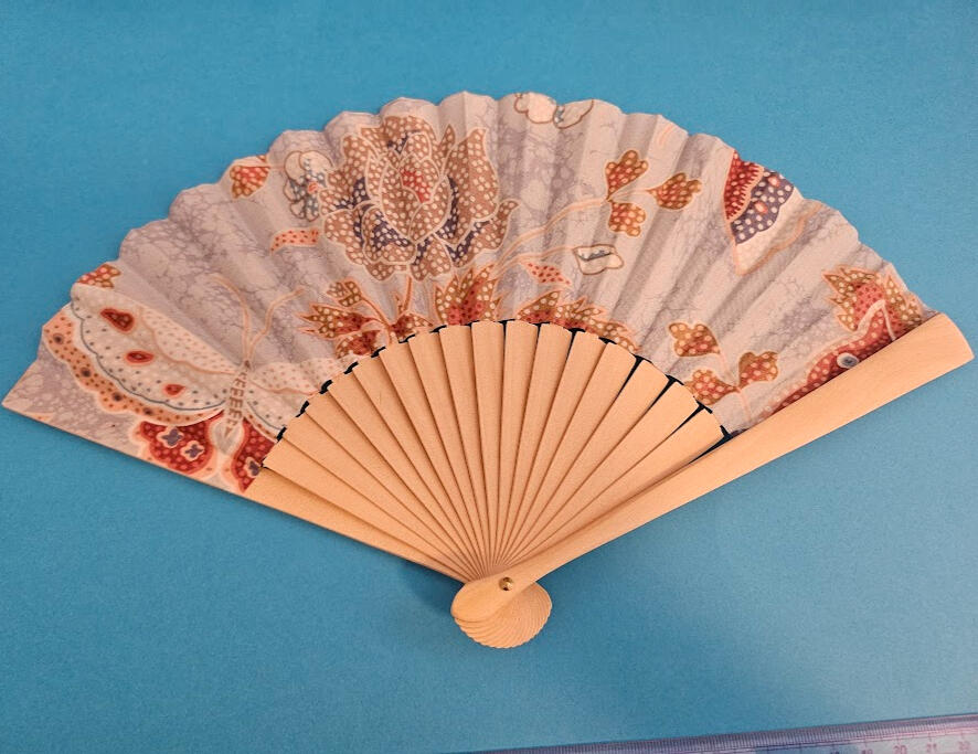 Eventail bois fleuri / bleu