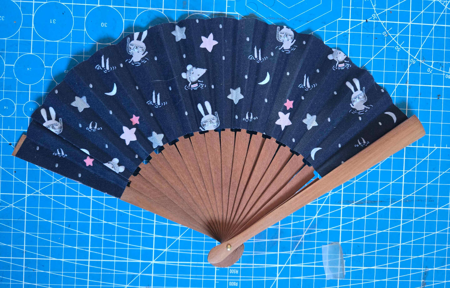 Eventail motif bleu nuit